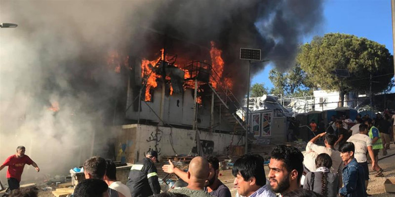 Εικόνες χάους επικρατούν στη Μόρια όπου καίγονται κοντέινερ στα οποία διαμένουν μετανάστες. Η φωτιά ξέσπασε το μεσημέρι της Κυριακής και σύμφωνα με πληροφορίες μετανάστες πυρπόλησαν κοντέινερ για να προκληθεί αναστάτωση και πανικός. Χαρακτηριστικό είναι το γεγονός ότι μόλις έφθασαν στην περιοχή τα πυροσβεστικά οχήματα, μετανάστες επιτέθηκαν στους πυροσβέστες, και έσπασαν τζάμια των αυτοκινήτων με πέτρες ώστε να εμποδιστεί η κατάσβεση της πυρκαγιάς. Υπάρχουν πληροφορίες για νεκρούς και τραυματίες.