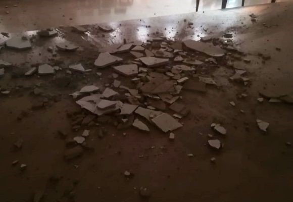 Από την αποκόλληση προκλήθηκαν σημαντικές υλικές ζημιές – φθορές τόσο στην οροφή όσο και στο δάπεδο του αμφιθεάτρου, δίχως να υπάρχει τραυματισμός, διότι ευτυχώς δεν είχαν εισέλθει άτομα εντός του χώρου.