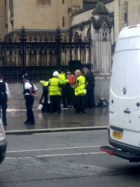 «Ένας άνδρας δίπλα μου στις πύλες του Κοινοβουλίου φαίνεται ότι περιλούστηκε με κάτι που μύριζε σαν βενζίνη», έγραψε στο Twitter ο βουλευτής Χιου Μέριμαν. «Απίστευτα θαρραλέα αντίδραση της αστυνομίας που τώρα τον συνδράμει».