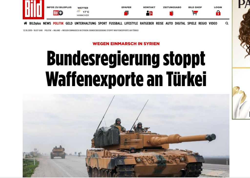 «Κατά του υπόβαθρου της τουρκικής επιθετικής ενέργειας στα βορειοανατολικά της Συρίας, η ομοσπονδιακή κυβέρνηση δεν θα εκδώσει νέες άδειες [εξαγωγής] για το σύνολο του στρατιωτικού εξοπλισμού που θα μπορούσε να χρησιμοποιηθεί από την Τουρκία στην Συρία», δήλωσε ο Γερμανός ΥΠΕΞ στην εφημερίδα.
