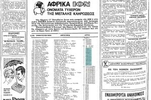 Το «αλιεύσαμε» στο φύλλο της 17ης Οκτωβρίου 1968 της «Ελευθερίας». Σ’ ένα διαγωνισμό της γκροφρέτας ΙΟΝ Άφρικα δίνονταν ποδήλατα ως δώρα στους μαθητές.