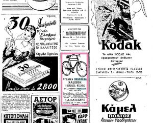 Δίτροχα και τρίτροχα παιδικά ποδήλατα πωλούνταν από 80 έως 1900 δρχ. όπως μας ενημερώνει η διαφήμιση σε σχετικό δημοσίευμα της εφημερίδας «Ελευθερία».
