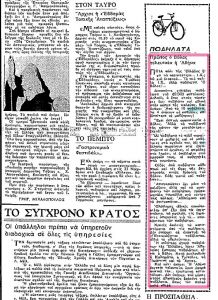 Όλες οι απαντήσεις εντός ολίγου, στις οθόνες σας, στην έρευνα που ακολουθεί. Με…πεταλιές στο παρελθόν, ανατρέχοντας δηλαδή στα αρχεία των εφημερίδων «ΤΑ ΝΕΑ» (πρώην «Αθηναϊκά Νέα») «Ελευθερία», «Εμπρός» – όπως είχαμε κάνει και παλαιότερα – σας μεταφέρουμε διαφημίσεις, ρεπορτάζ και σχόλια για το ποδήλατο στην Ελλάδα, τον «καιρό εκείνο».
