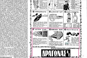 Επιστροφή στα θρανία λέει η Διαφήμιση στην «Ελευθερία» (10/9/1961) η οποία καλεί τους καταναλωτές να αγοράσουν προϊόντα για τα παιδιά από τον Δραγώνα, ανάμεσά τους και ποδήλατα.