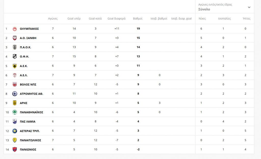 Η αγωνιστική ολοκληρώνεται την Κυριακή με τα παιχνίδια Πανιώνιος – Αστέρας Τρίπολης, Ξάνθη – Αρης, ΠΑΟΚ – Λαμία, ΑΕΚ – Βόλος και Ατρόμητος – Παναθηναϊκός.
