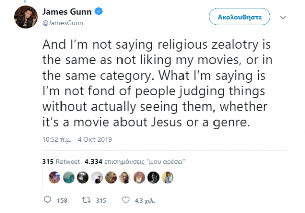 Προηγουμένως ο Τζέιμς Γκαν είχε δημοσιεύσει άλλο σχόλιο για τον Μάρτιν Σκορσέζε.