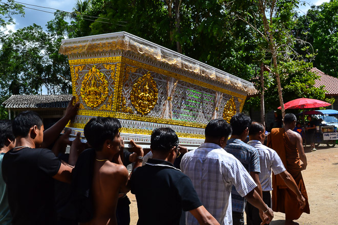Το άψυχο σώμα της 70χρονης έμεινε στο ναό για τρεις ημέρες πριν από την τελετή, ακολουθώντας τα έθιμα των Βουδιστών της Ταϊλάνδης και στην συνέχεια έπρεπε να οδηγηθεί για αποτέφρωση.