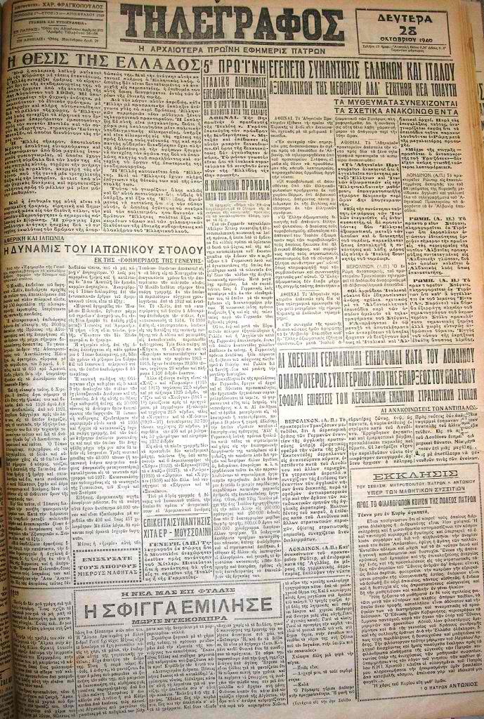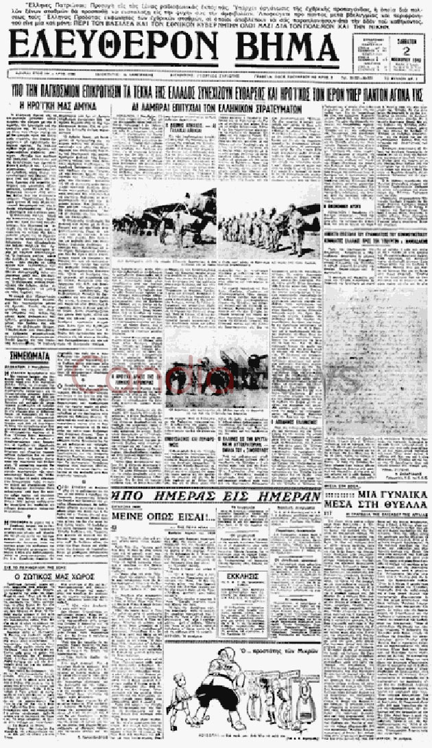 «Η Ιταλία κήρυξε τον πόλεμο και πρόσβαλε τα από Αλβανίας σύνορα της Ελλάδας». «Ο Χίτλερ συναντά στην Φλωρεντία τον Μουσολίνι ο οποίος του ανακοινώνει: «Φύρερ, προελαύνουμε», είναι μερικοί από τους τίτλους των εφημερίδων που σώζονται μέχρι και σήμερα.