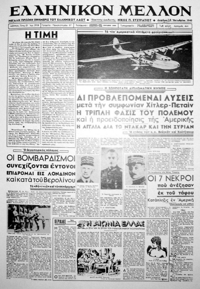 Παρακάτω μπορεί να δει κανείς μερικά από τα πρωτοσέλιδα που κυκλοφόρησαν οι εφημερίδες την ιστορική ημέρα της 28ης Οκτωβρίου 1940 καθώς και πως εκείνες αξιολόγησαν τα γεγονότα.