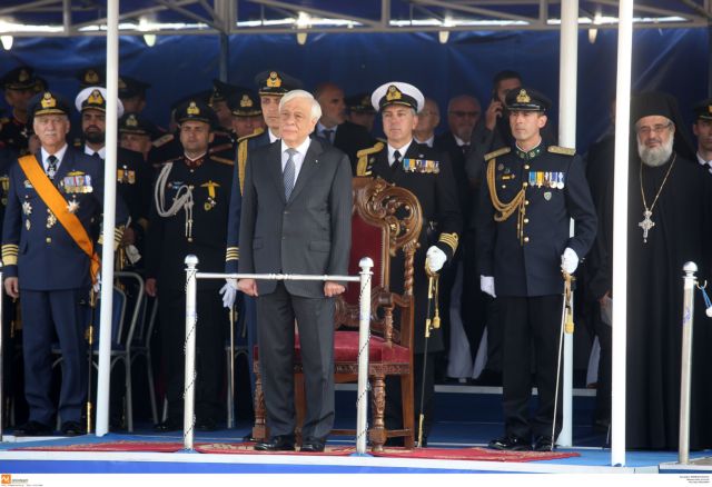 Χωρίς ιδιαίτερη καθυστέρηση και παρουσία βουλευτών, η παρέλαση ενώπιον του Προέδρου της Δημοκρατίας, Προκόπη Παυλόπουλου ξεκίνησε ακριβώς μόλις πέντε λεπτά μετά τις 11.00.