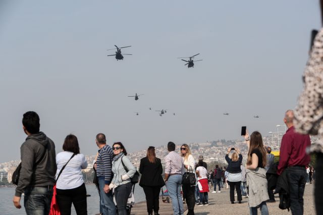 Με τη βοήθεια του καιρού χιλιάδες πολίτες συγκεντρώθηκαν κατά μήκος της παραλιακής λεωφόρου Μ. Αλεξάνδρου για τη μεγάλη στρατιωτική παρέλαση της 28ης Οκτωβρίου στη Θεσσαλονίκη.
