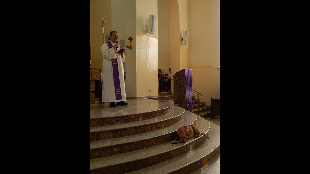 Μάλιστα, κι ενώ η λειτουργία βρίσκεται σε εξέλιξη, όπως ανέφερε ο ιερέας στη Metro, «συζητάμε για τους σκύλους στους δρόμους, για τον σεβασμό που τους αξίζει και για το πώς να τους προστατεύουμε».