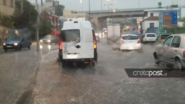 «Άνοιξαν» οι ουρανοί και στο Ηράκλειο, με τη «Βικτώρια» να προκαλεί προβλήματα κυρίως στην ενδοχώρα του νομού.