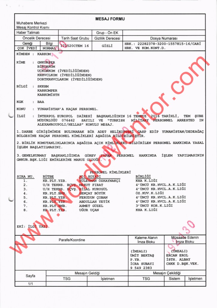 Σε αυτό λοιπόν, φαίνονται οι οδηγίες του γενικού στρατηγείου στις 16 Ιουλίου, προκειμένου μία ειδική ομάδα να ταξιδέψει στην Αλεξανδρούπολη, ώστε να παραλάβει και να επιστρέψει τόσο τους 8, όσο και το ελικόπτερο Sikorsky με το οποίο είχαν διαφύγει, ενώ άλλη μία θα ήταν σε κατάσταση ετοιμότητας στην Κωνσταντινούπολη.