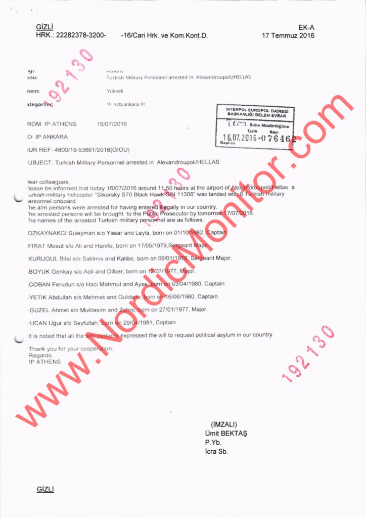 Υπενθυμίζεται η ιστοσελίδα Nordic Monitor, έδωσε στη δημοσιότητα απόρρητα έγγραφα σύμφωνα με τα οποία οι Τούρκοι ετοίμαζαν στρατιωτική επιχείρηση για να πάρουν πίσω του «8» αξιωματικούς που είχαν φτάσει στην Ελλάδα με ελικόπτερο, μια μέρα μετά την απόπειρα πραξικοπήματος στην Τουρκία στις 15 Ιουλίου 2016.