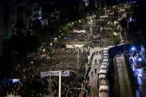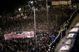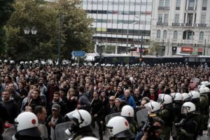 Νωρίτερα, ανεβαίνοντας την οδό Σταδίου, οι διαδηλωτές τραγουδούσαν «πότε θα κάνει ξαστεριά».