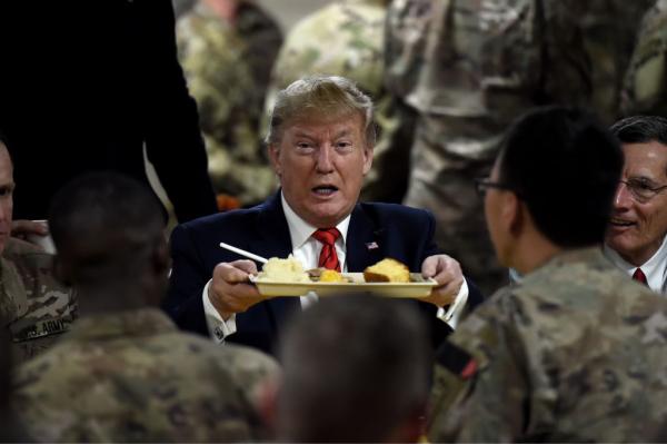 Δείχνοντας ότι είναι και αυτός ένας… στρατιώτης των ΗΠΑ, ο Ντόναλντ Τραμπ σερβίρισε γαλοπούλα και έκατσε στην τραπεζαρία μαζί με τους υπόλοιπους φαντάρους.