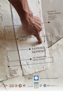 Η εικαστικός Νίνα Παππά παρουσιάζει το έργο της με τίτλο «Το Χαμένο Κείμενο», μία διαδραστική βίντεο-περιήγηση (video walk) στο Επιγραφικό Μουσείο έως τις 31 Μαρτίου 2020. Το έργο προτείνει στον θεατή μία πολυεπίπεδη διαδρομή στον χώρο των εκθεμάτων, μια σύνθετη οπτικοακουστική εμπειρία στον κόσμο της επιγραφικής, η οποία θα τον φέρει σε επαφή με τις εμπειρίες και τα βιώματα των επιγραφικών επιστημόνων.
