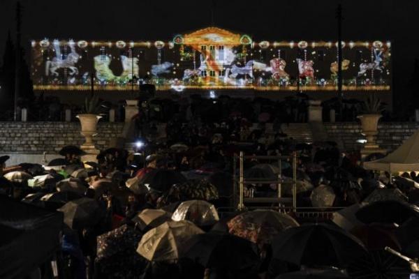 Παρά την έντονη βροχόπτωση, πλήθος κόσμου συγκεντρώθηκε στην κεντρική πλατεία της πρωτεύουσας, η οποία φόρεσε τα γιορτινά της.