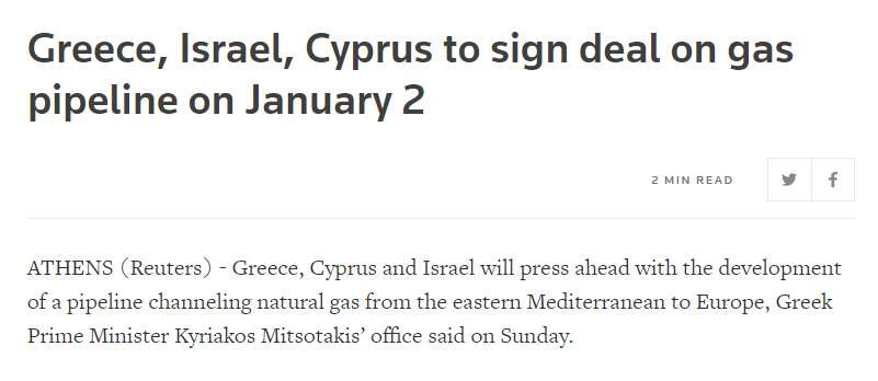 Την ίδια στιγμή, η επικείμενη υπογραφή της Διακρατικής Συμφωνίας για τον ενεργειακό αγωγό East Med κάνει τον γύρο του κόσμου.
