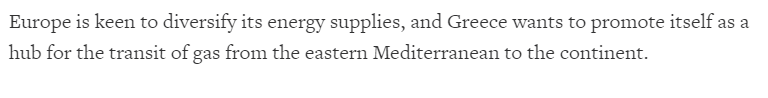 Όπως σημειώνει το Reuters, η Ελλάδα φιλοδοξεί να καταστεί κόμβος μεταφοράς του φυσικού αερίου από την Ανατολική Μεσόγειο στην Ευρώπη, την ίδια στιγμή που η Ευρώπη επιθυμεί τη διαφοροποίηση του ανεφοδιασμού της.