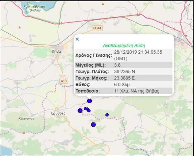 Οι πρώτες εκτιμήσεις του Ευρωμεσογειακού Ινστιτούτου έκαναν επίσης λόγο για σεισμό μεγέθους 3,8 της κλίμακας Ρίχτερ, που σημειώθηκε 39 χιλιόμετρα βορειοδυτικά της Αθήνας.