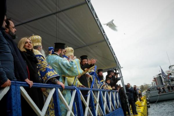 Στο σημείο βρίσκονταν τρία πλοία του Πολεμικού Ναυτικού, τα οποία απέδωσαν τιμές στην τελετή ρίψης του Τιμίου Σταυρού.