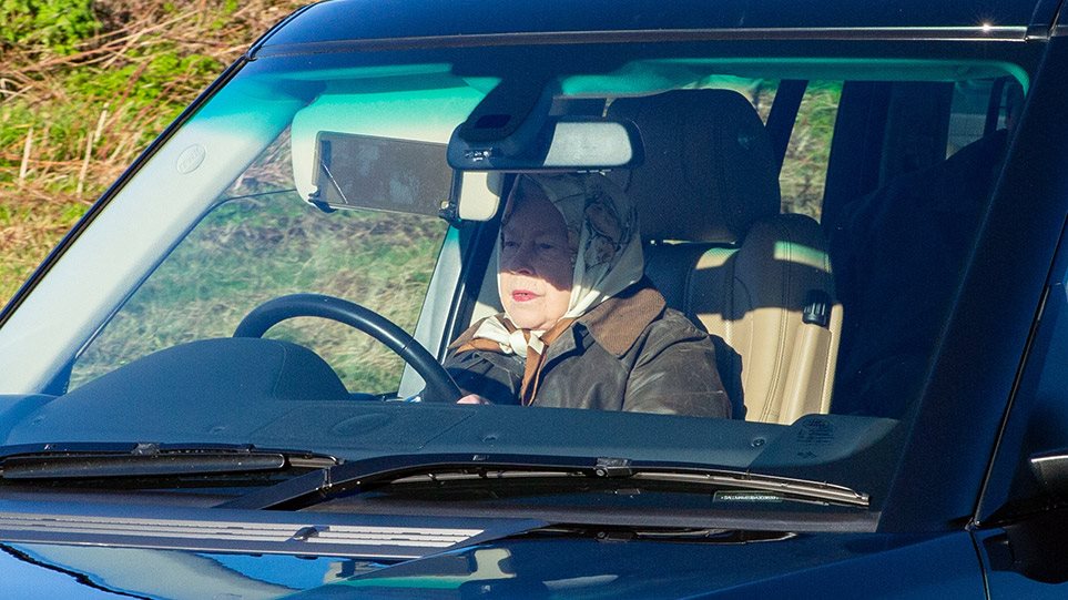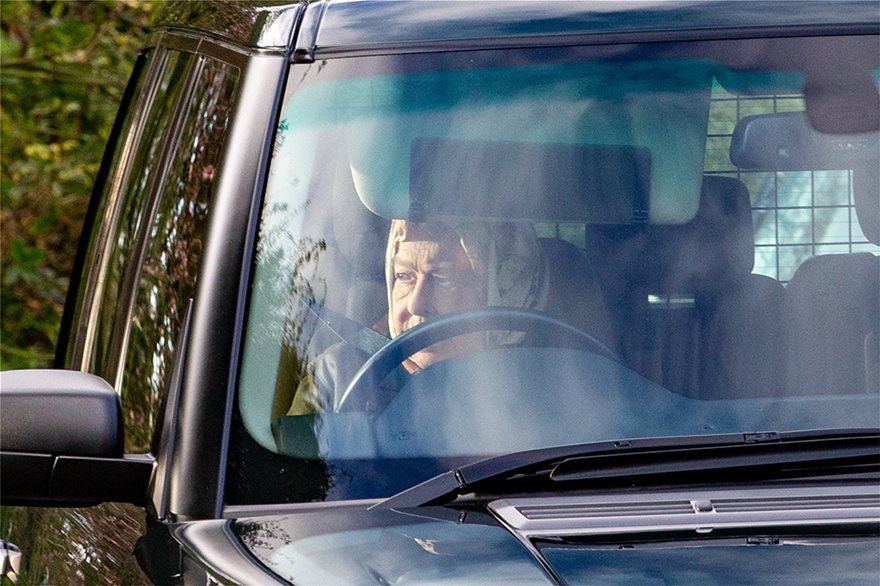 Σε σημερινή της φωτογραφία η Ελισάβετ φαίνεται να οδηγεί μόνη της το αυτοκίνητό της, στο Νόρφολκ, στην πρώτη της δημόσια εμφάνιση μετά την ανακοίνωση περί βασιλικής «εξόδου» του ζεύγους των Σάσεξ.