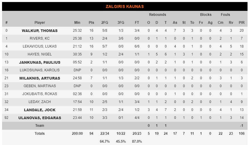 Στο δεύτερο δεκάλεπτο ο Λεκαβίτσιους ήταν σαν να είχε… χρωστούμενα, ενώ συνολικά στο πρώτο ημίχρονο οι δύο πρώην «πράσινοι» (Λεκαβίτσιους και Ρίβερς) κι ο πρώην «κόκκινος» (Λεντέι) πέτυχαν 27 πόντους κι ήταν οι παίκτες που έδωσαν στη Ζαλγκίρις το… κάτι παραπάνω.