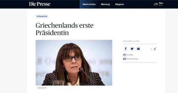 Στο ίδιο πνεύμα είναι το δημοσίευμα με τίτλο «Η πρώτη Πρόεδρος της Ελλάδας» στην εφημερίδα Die Presse, στο οποίο σημειώνεται επιπλέον ότι η πενταετής θητεία του σημερινού Προέδρου, του 67χρονου συντηρητικού πολιτικού Προκόπη Παυλόπουλου, ολοκληρώνεται στις 13 Μαρτίου.