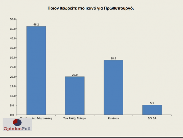 Ο Κυριάκος Μητσοτάκης παραμένει ισχυρός και με μεγάλη δημοφιλία, επτά μήνες μετά τις εκλογές. Το 46,2% τον θεωρεί πιο ικανό για Πρωθυπουργό – προηγείται του Αλέξη Τσίπρα που επιλέγεται από το 20%.