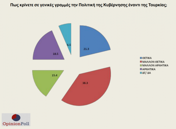 Το 59,6% δηλώνει ικανοποιημένο από την κυβερνητική πολιτική απέναντι στην Τουρκία.