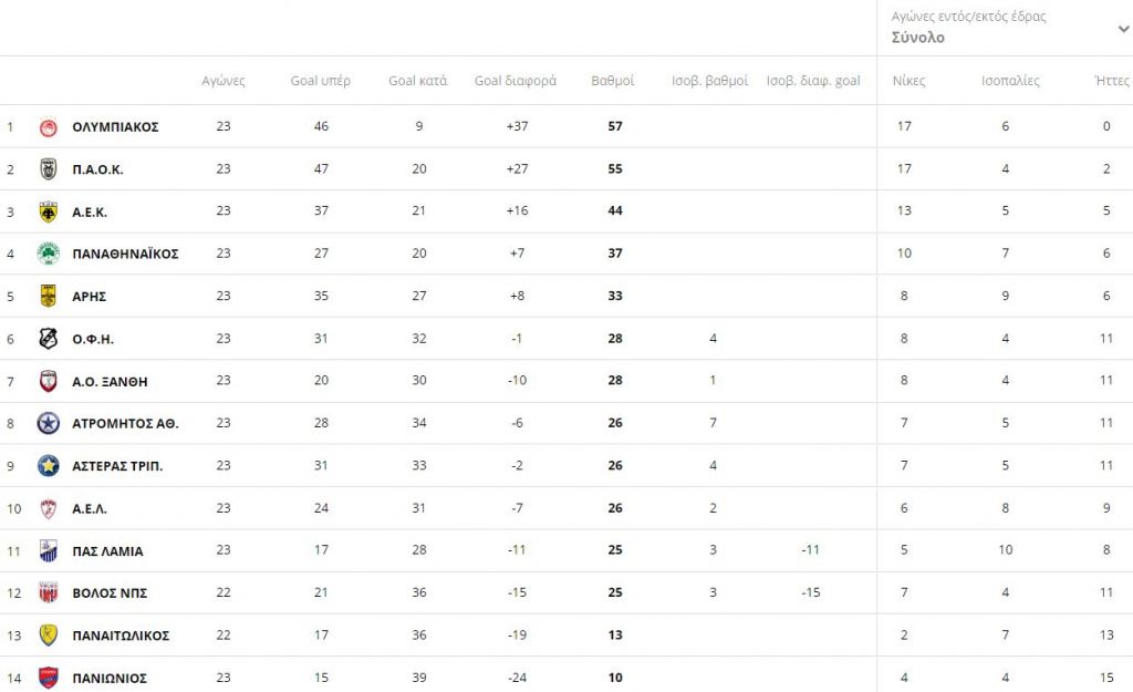 Δείτε τα αποτελέσματα και το πρόγραμμα της 23ης αγωνιστικής: