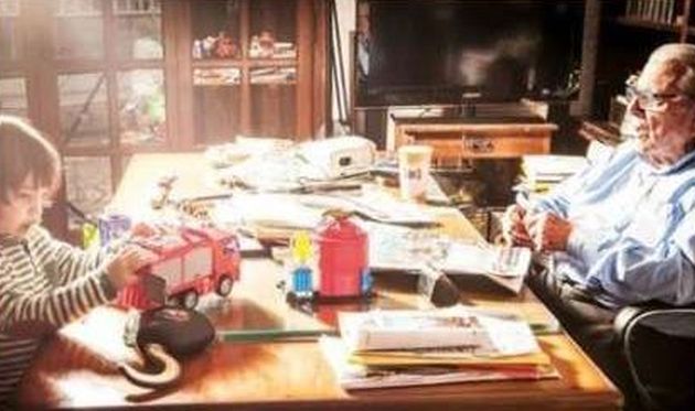 Στο ένα, ο γιος του Κώστα Βουτσά παίζει στο γραφείο του πατέρα του.