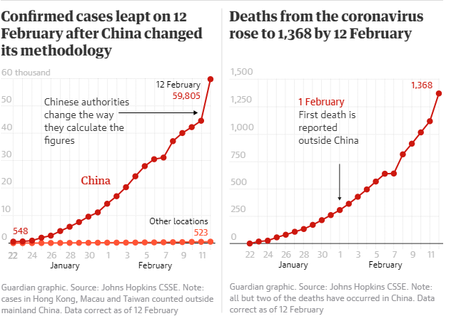 Όπως εξήγησε ο Ράιαν, η αύξηση κατά περίπου 14.000 των κρουσμάτων σε μία ημέρα, που ανακοίνωσε η Κίνα, αντικατοπτρίζει την αλλαγή στην προσέγγιση να καταγράφονται ασθενείς στην επαρχία Χουμπέι, η μόλυνση των οποίων επιβεβαιώνεται με ακτινογραφία θώρακα κι όχι μονάχα εκείνων που επιβεβαιώθηκαν μέσω αιματολογικών εξετάσεων.