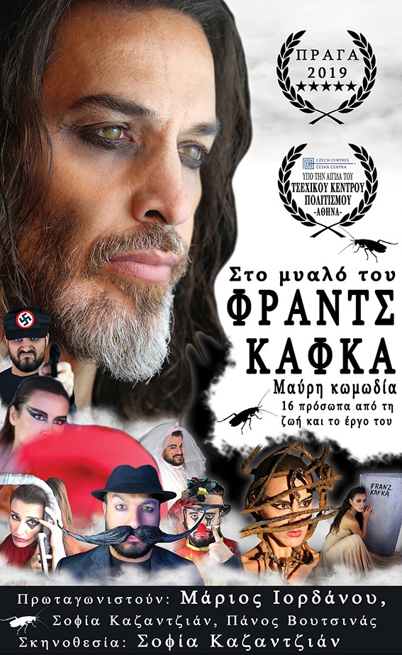 Η παράσταση «Στο μυαλό του Φραντς Κάφκα» παρουσιάζεται κάθε Σάββατο και Κυριακή στις 18.00 στο θέατρο Altera Pars. Τη σκηνοθεσία υπογράφει η βραβευμένη από την Unesco Σοφία Καζαντζιάν, η οποία έχοντας παρουσιάσει με μεγάλη επιτυχία δουλειά της για τον Τσέχο συγγραφέα τον περασμένο Ιανουάριο στη γενέτειρά του, την Πράγα, δημιουργεί την πιο καφκική κωμωδία που έγινε ποτέ! Γέλιο και συγκίνηση μαζί και ερμηνείες που ακροβατούν μεταξύ λογικού και παραλόγου ταξιδεύουν το θεατή στον ατμοσφαιρικό κόσμο του ιδιοφυούς συγγραφέα, Φραντς Κάφκα.