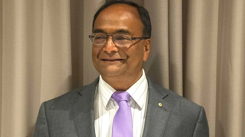 Ο πρώην πρόεδρος του ιατρικού συλλόγου της Αυστραλίας Mukesh Haikerwal βάζει κοστούμι, μάσκα και καλύμματα παπουτσιών πριν συναντήσει ασθενείς έξω από την κλινική του.