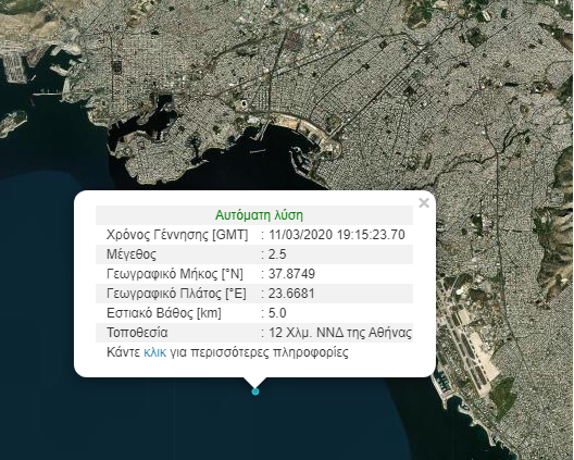 Το επίκεντρο του σεισμού βρίσκεται 12 χλμ. νότια-νοτιοδυτικά της Αθήνας και το εστιακό του βάθος είναι τα 5 χιλιόμετρα.