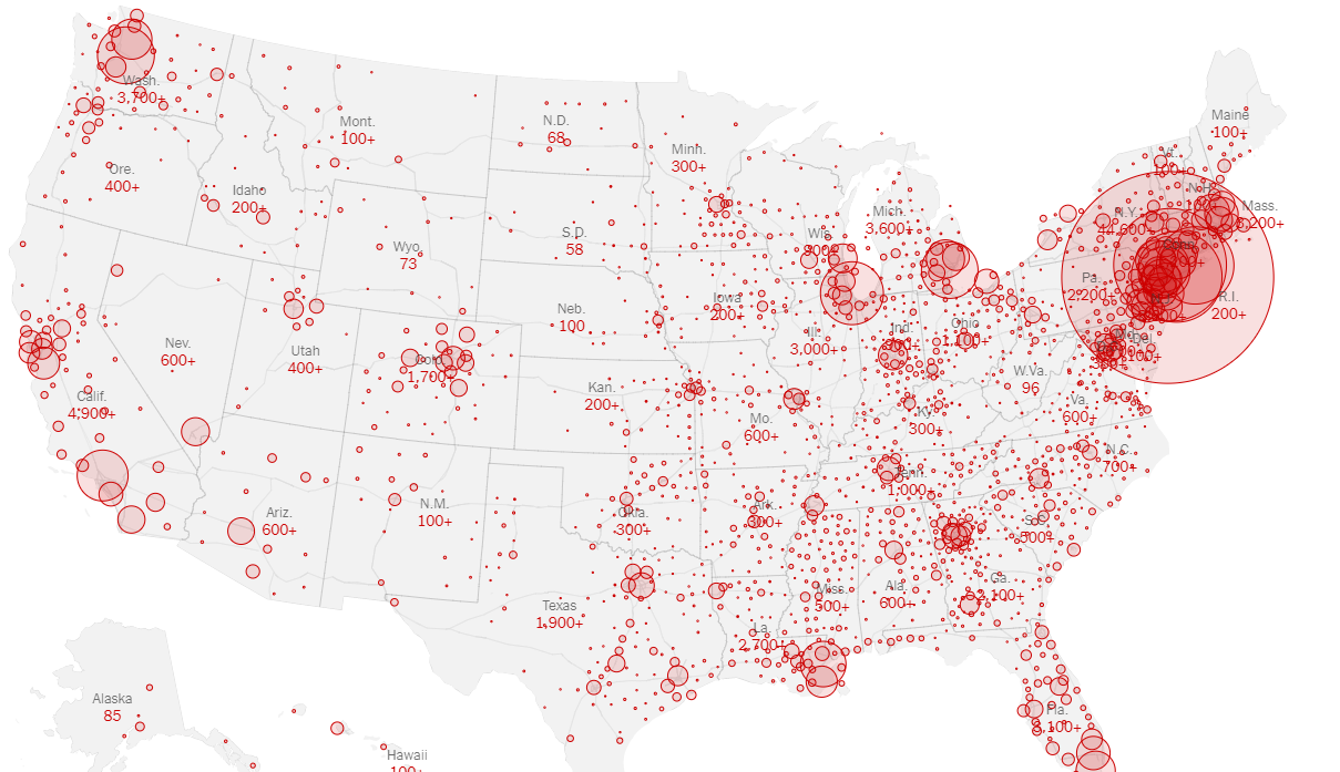 Το μεγαλύτερο πρόβλημα εντοπίζεται στην πολιτεία της Νέας Υόρκης στην οποία βρίσκεται πάνω από το 1/3 των κρουσμάτων της χώρας.