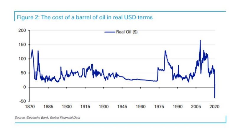 Είναι ενδεικτικό ότι στα μέσα της εβδομάδας στις ΗΠΑ το αμερικανικό αργό (WTI) για παράδοση Μαΐου βούλιαξε στα χαμηλότερα επίπεδα από το 1946. Οι τιμές για τα συμβόλαια αυτά όχι μόνο μηδενίστηκαν, αλλά έφτασαν στα πρωτοφανή επίπεδα όλων των εποχών των μείον 37 δολαρίων, με τους παραγωγούς να πληρώνουν ουσιαστικά τους αγοραστές για να πάρουν το πετρέλαιό τους. Η διαπραγμάτευση για τα συμβόλαια παράδοσης του Μαΐου του αμερικανικού αργού ολοκληρώθηκε την περασμένη Τετάρτη.