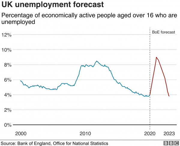Πριν από δύο εβδομάδες, ο Γκέρτγιαν Βλίχε, μέλος της Επιτροπής Νομισματικής Πολιτικής, προέβλεψε ότι το Ηνωμένο Βασίλειο θα γνωρίσει μια ύφεση «ταχύτερη και βαθύτερη από οτιδήποτε έχουμε δει τον τελευταίο αιώνα, ή πιθανόν αρκετούς αιώνες», λόγω της πανδημίας.