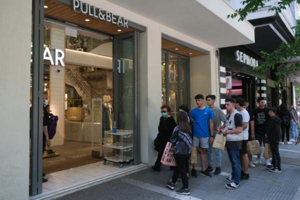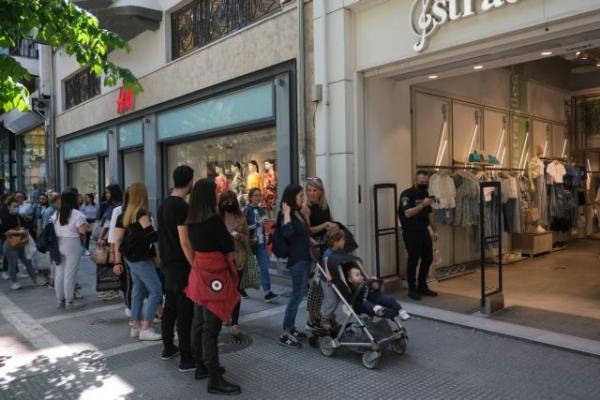 Πρώτη ημέρα λειτουργίας των εμπορικών καταστημάτων σήμερα και οι ουρές που σχηματίστηκαν ήταν μεγάλες.