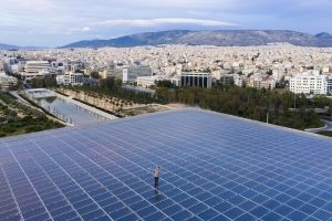 Το Ενεργειακό Στέγαστρο του ΚΠΙΣΝ αιωρείται 17 μέτρα πάνω από το κτίριο της Εθνικής Λυρικής Σκηνής και τον Φάρο και 47 μέτρα από την επιφάνεια της θάλασσας. Με διάσταση 100×100 μέτρα, καταλαμβάνει δέκα στρέμματα, δηλαδή ισοδυναμεί με 1,5 γήπεδο ποδοσφαίρου. Το βάρος του φτάνει τους 4.500 τόνους. Η τομή του θυμίζει πτερύγιο αεροπλάνου, γιατί, σε μια περιοχή τόσο ανοικτή και εκτεθειμένη όπως το Δέλτα Φαλήρου, ο άνεμος εύκολα φτάνει σε υψηλές ταχύτητες και το σχήμα του δεν πρέπει να προβάλλει αντίσταση. Για την τελική του μορφή συναρμολογήθηκαν 750 πανέλα.