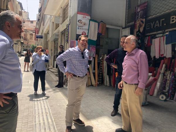 Ο Αλέξης Τσίπρας, συνοδευόμενος από στελέχη του ΣΥΡΙΖΑ, είχε συνομιλία με καταστηματάρχες και εργαζόμενους οι οποίοι ετοιμάζονται να ανοίξουν τα μαγαζιά τους ή ήδη έχουν ανεβάσει ρολά.