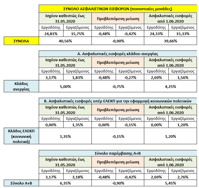 Μετά από αυτή τη μείωση, το σύνολο των ασφαλιστικών εισφορών έχει ως ακολούθως: