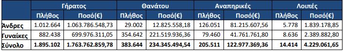 Συντάξεις ανά φύλο και κατηγορία σύνταξης