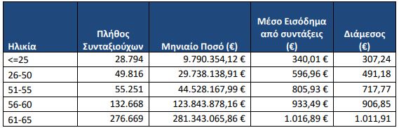 Συνταξιούχοι ηλικίας μεταξύ 61-70 ετών λαμβάνουν τα υψηλότερα ποσά σύνταξης.