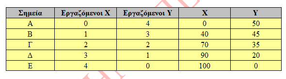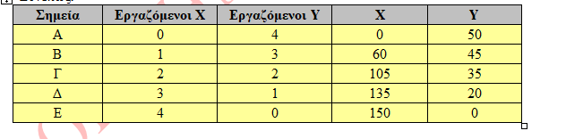 Παρατήρηση 1: Οι στήλες που αφορούν τους εργαζόμενους μας δείχνουν ότι σε κάθε συνδυασμό η συνολική εργασία είναι σταθερή και ίση με το σύνολο των διαθέσιμων εργαζόμενων (απαραίτητη προϋπόθεση για την κατασκευή της ΚΠΔ η πλήρης απασχόληση).