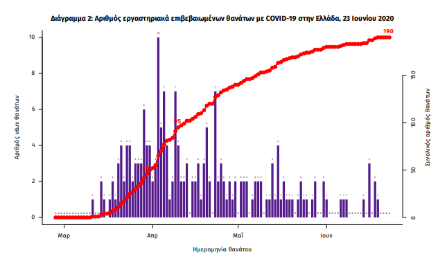Τέλος, δεν έχει καταγραφεί κανένας νέος θάνατος ενώ έχουμε 190 θανάτους συνολικά στη χώρα. 60 (31.6%) γυναίκες και οι υπόλοιποι άνδρες.