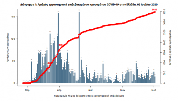 Αποκαλυπτικά είναι τα στοιχεία που δημοσιοποίησε την Παρασκευή ο Εθνικός Οργανισμός Δημόσιας Υγείας (ΕΟΔΥ) καθώς υπήρξαν ακόμη 28 κρούσματα ανεβάζοντας τον συνολικό απολογισμό σε 3.486. Εξ αυτών, μάλιστα, τα 13 εντοπίστηκαν κατόπιν ελέγχων στις πύλες εισόδου της χώρας.